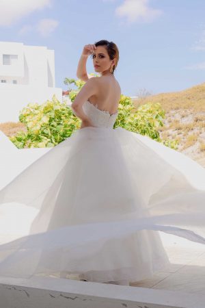 Este diseño es uno de los mas anhelado por el estilo y sus bellos detalles, por su caída perfecta, corte simétrico y ajuste perfecto al cuerpo. Estas características Hacen de este vestido una de las mejores opciones para nuestra novia.