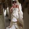 La parte de atrás de este fabuloso diseño se cierra, pero con botones cubiertos, dándole dramatismo visual, vestido pensando para la novia atrevida que quiere salir de lo cotidiano. Pero que al mismo tiempo agrega un aura de romance moderno.