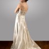 Made in silk satin, with a heart-shaped neckline adorned with crystals and a waist with the same crystal accent, with a skirt that provides freedom of movement as it is constructed with a single seam at the back. Available in cream and bone white colors.